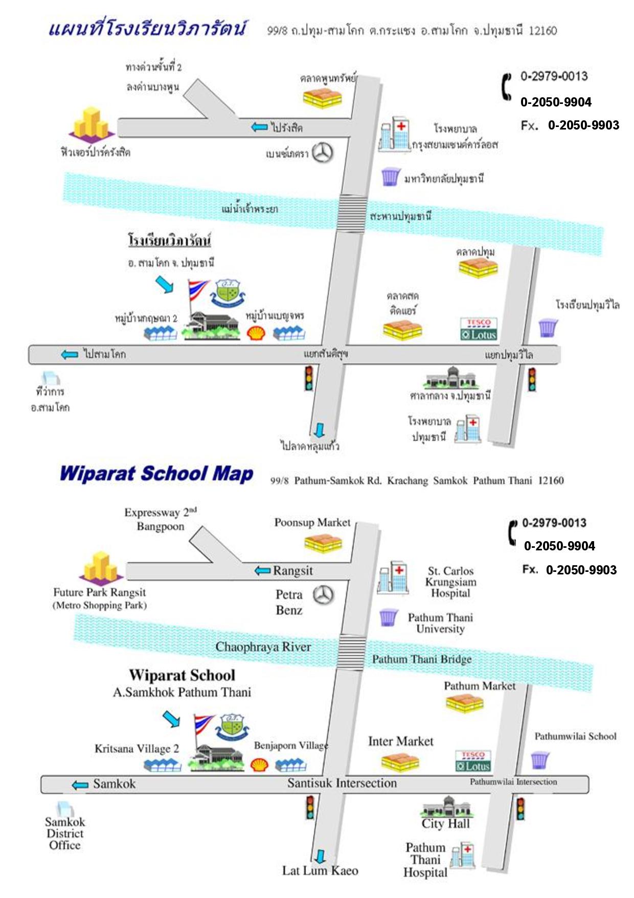 99/8 หมู่ 3 ถ.ปทุม-สามโคก ต.กระแชง อ.สามโคก จ.ปทุมธานี ตำบลกระแชง อำเภอสามโคก จังหวัดปทุมธานี 12160 เบอร์โทรศัพท์ 029790013 เบอร์โทรสาร 029791826 Email : wiparatschool57@gmail.com กรอกแบบฟอร์ม