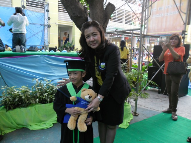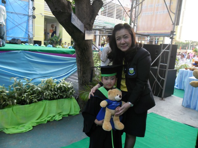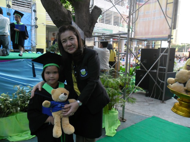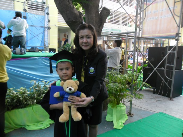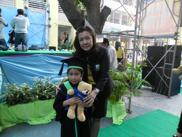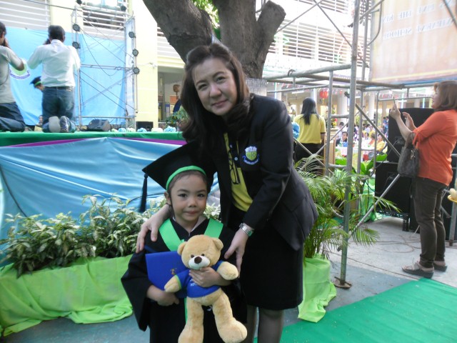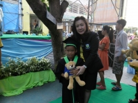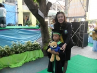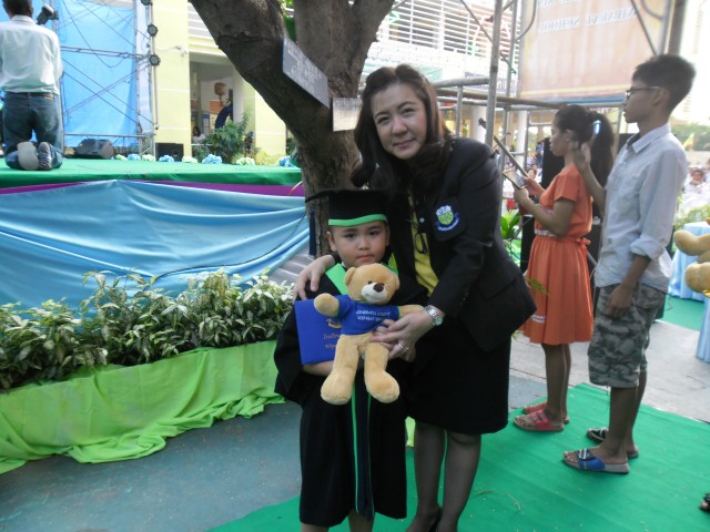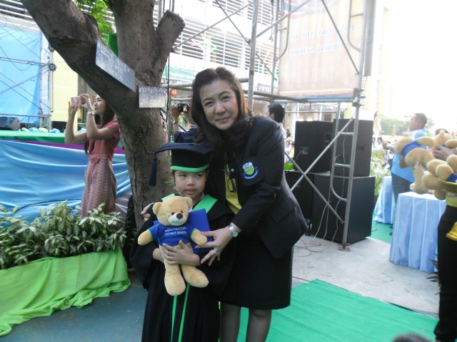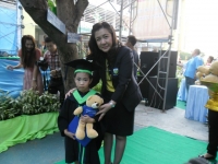 ผศ.ดร.วิภาวดี ทูปิยะ รร.วิภารัตน์ มอบของที่ระลึกตุ๊กตาหมี แก่บัณทิตย์น้อยที่สำเร็จการศึกษา